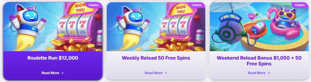 Robocat casino Canada has some excellent promos for regulars - everything from tournaments to millions of free spins and even a full online VIP casino program. Be sure to check out the promos section every time you log in, as this is where you can see what bonuses you have available.