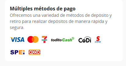 Las transferencias bancarias brindan comodidad y mucha seguridad, pues son una opción reconocida y que lleva muchishimos años de vigencia en la industria. Obviamente existen diversos bancos en México, por lo que hay casinos que aceptan varios de ellos. Incluso también existen los casinos con SPEI, la red interbancaria de transferencias electrónicas.