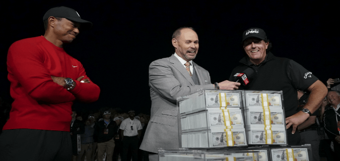 A Woods vs. Phil Mickelson (above right) match play event in November was chocked with sports betting references and data, in keeping with a sport that involved gambling from the outset. It remains to be seen how niche sports embrace and utilize the gambling industry as a way to launch themselves into an upper echelon occupied by Major League Baseball, National Football League, National Basketball Association and National Hockey League, especially if the Deloitte analysis proves correct.