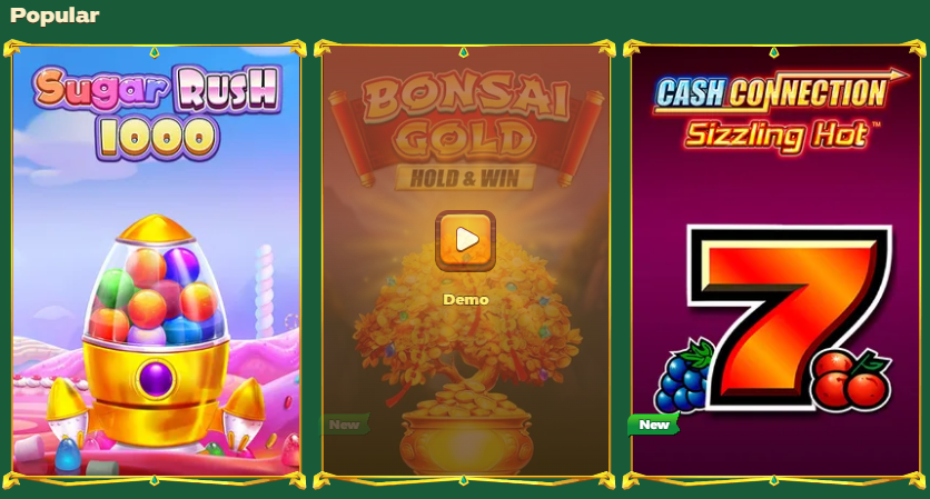 One of our favourite aspects of GreenLuck Casino is the chance to win jackpots slots. There’s a section of the site devoted to this, and you can choose between different providers. There are also sections devoted to Hot Jackpots, New Jackpots and Lucky Jackpots. We’ve enjoyed spinning the reels for games such as Bonsai Gold, Gates of the Underworld and Winning Clover 5. Many of the games are attached to Pragmatic Play casino’s Drops and Wins promotion.